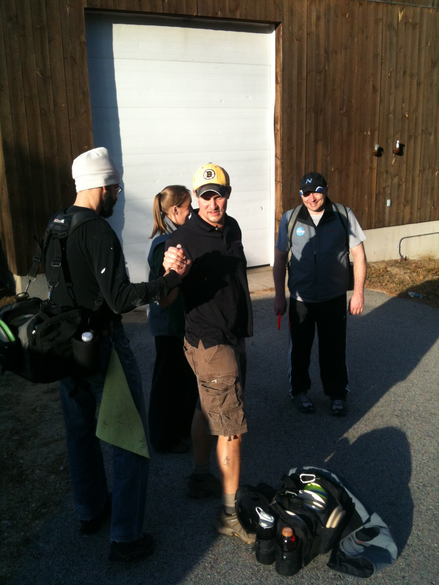 The only picture I have of the record-setting team “Smith/Thomas”- they were waiting for a log jam at hole 1.