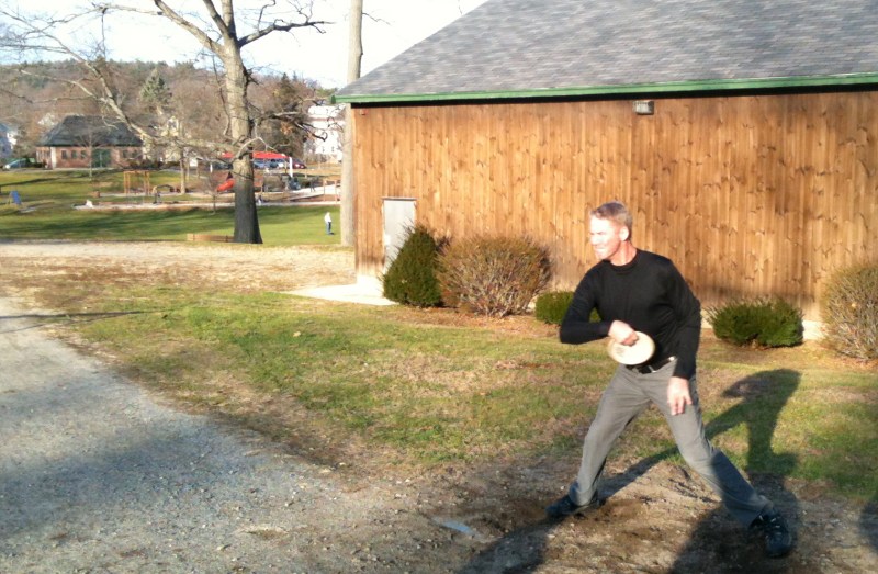 Daniel Marcus throws a drive on Hole 12 Amesbury